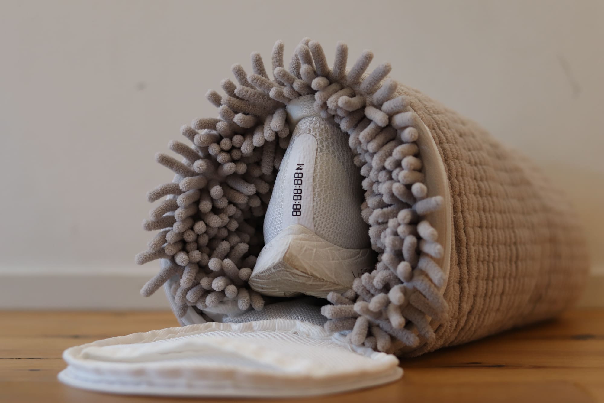 たくさんの毛足が靴の表面をゴシゴシ擦って綺麗にしてくれるんです。もこもこで厚みがあるから、洗濯中に靴にかかる衝撃も和らげてくれます。