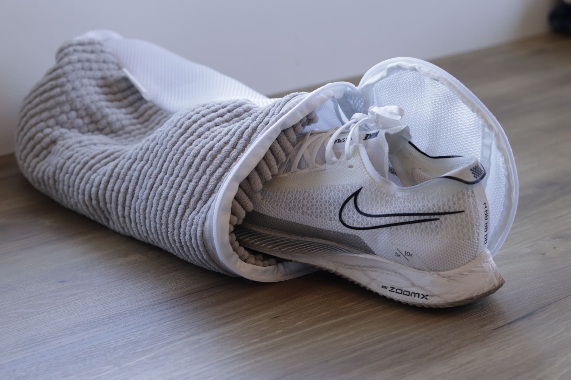 はじめに、靴を入れずにネットのみで裏返した状態で柔軟剤を使用しないで洗濯して乾かすと、生地の縫い目が縮み、ネットの強度が増し、壊れにくくなります。
