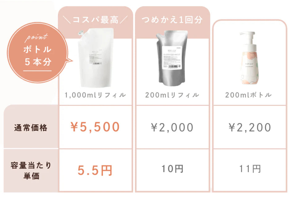 • 詰め替えを使えば半額!1回あたり約70円でケアできます!
